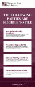 Under California law, the people who can file a wrongful death claim usually include spouses, domestic partners, children, and sometimes parents or other dependents. A lawyer helps determine who is legally eligible to file the claim.